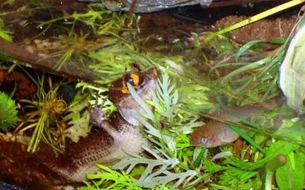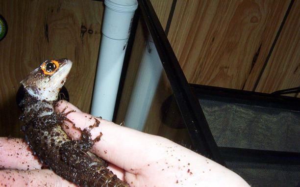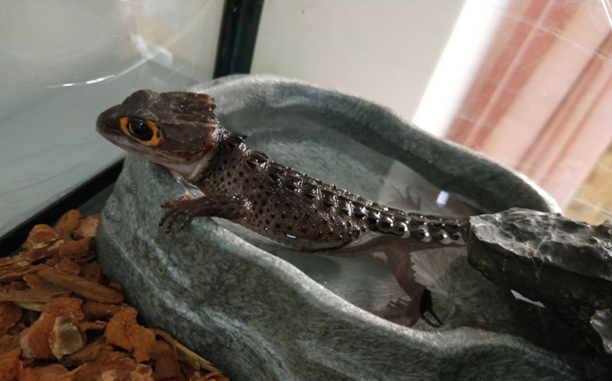 红眼鹰蜥是一种半水生蜥蜴,饲养环境也应该是一个半水半陆地的环境,但这个水的深度也不能太深,因为它们其实不会游泳。(这里我想吐槽一句,不会游泳还天天呆在水边,红眼鹰蜥真是作死界的高手)