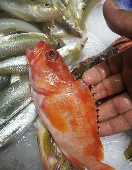 6、钓鱼者多以活虾,蚯蚓钩钓,红尾鱼味道鲜美,营养丰富,多以制成咸鱼食用;