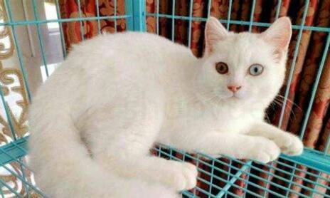 2、全身上下都是纯白色的毛发,口鼻处的毛发会呈八字分开,纯白英短的眼睛颜色是深宝石蓝、金黄以及古铜色等;
