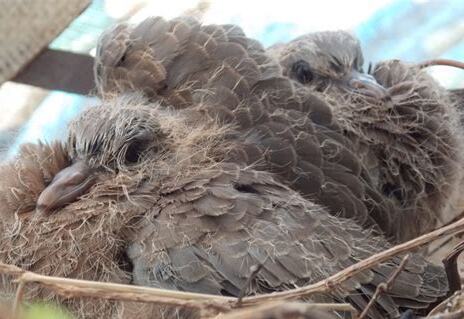 2、一只孵蛋另一只寻找食物,偶尔会有斑鸠飞到人类窗台生蛋孵化,切忌不要去打扰它们;